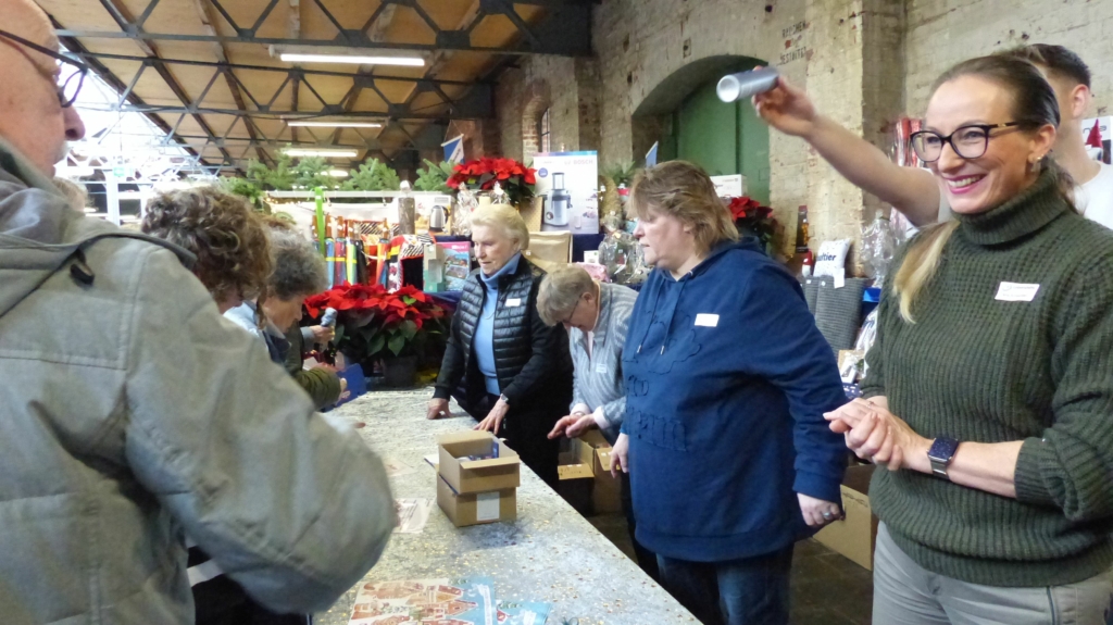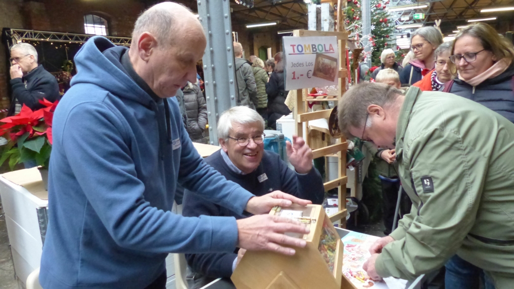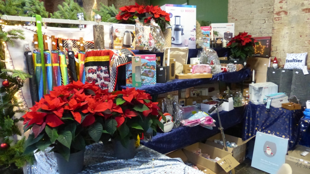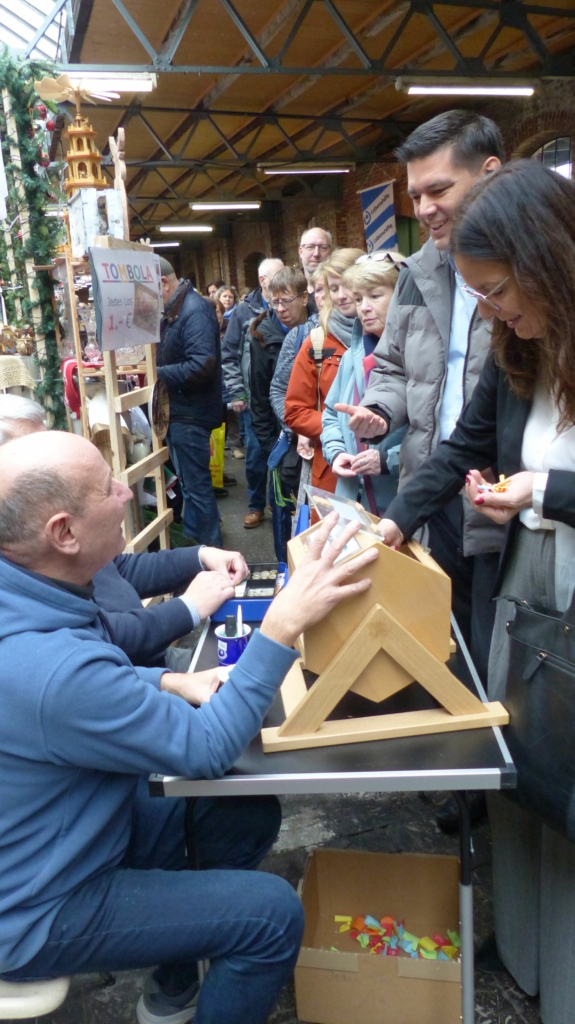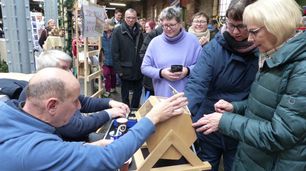 Auch an der großen Tombola, die durch Spenden überwiegend heimischer Unternehmen und durch Spenden vieler Kunsthandwerkender bestückt wurde, gab es schon beim Loskauf lange Schlangen anschließend bei der Einlösung der Gewinne viele glückliche Gesichter.