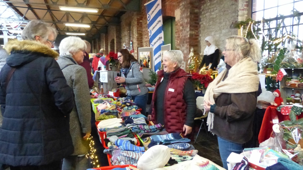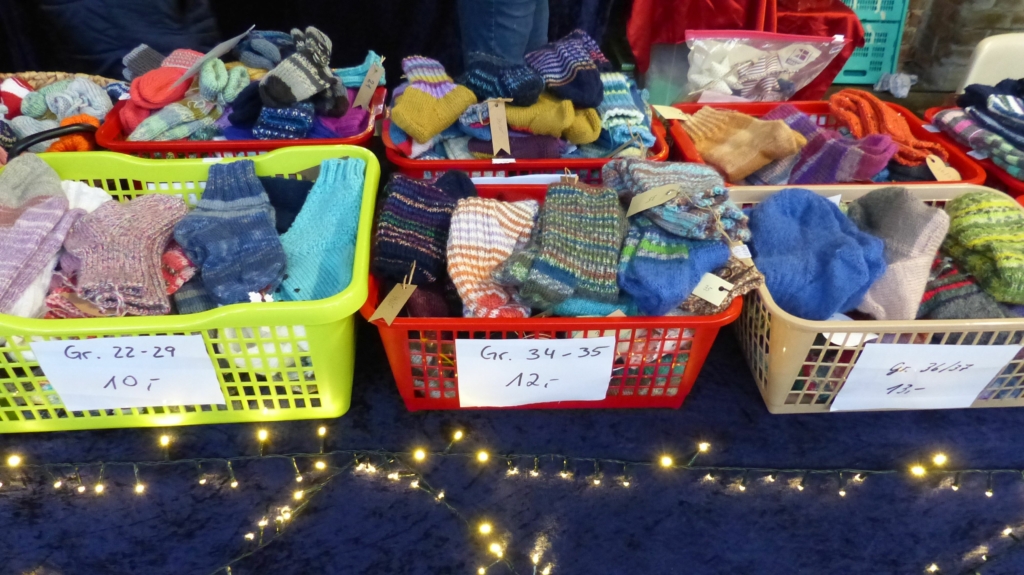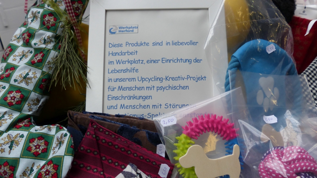 von Menschen mit Unterstützungsbedarf in den Bereichen der Herforder Werkstätten der Lebenshilfe hergestellt wurden. Ebenso haben Angehörige und Freunde der Lebenshilfe wieder zahlreiche Paare Socken für den Basar gestrickt und Marmelade gekocht. Eine vielseitige Auswahl schöner und nützlicher Dinge, Adventsgestecke, Holz- und Filzwaren wurde wieder zum Verkauf angeboten und fand großen Anklang.