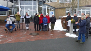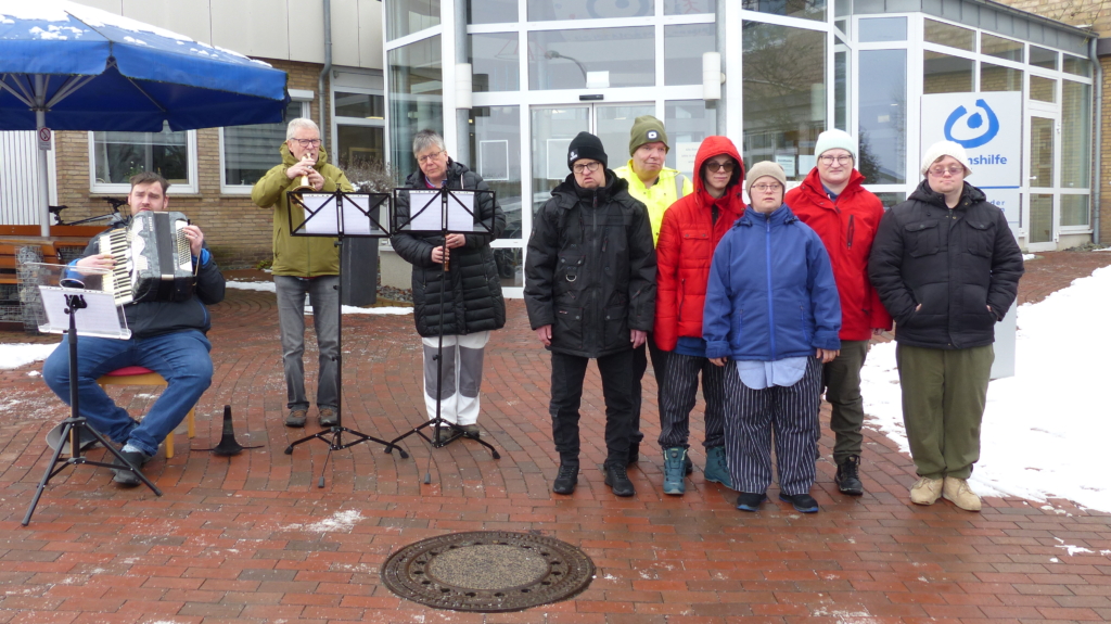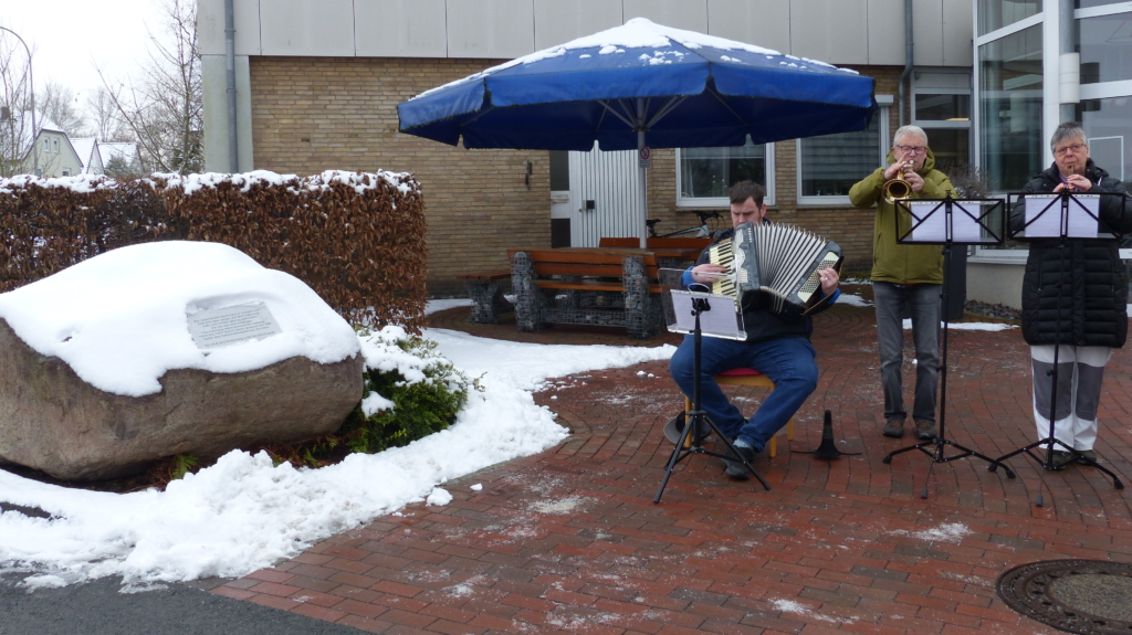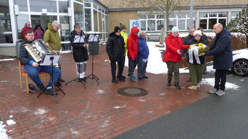 Er nannte die Begriffe Vergessen und Versprechen. Vergessen, weil der Tag der Befreiung von Auschwitz nun 81 Jahre zurückliege und gleichwohl nie vergessen werden dürfen. Dies sei man den Opfern stets schuldig unabhängig von der historischen Zeitspanne. Zugleich gab er für die Lebenshilfe das feste Versprechen ab, dafür einzustehen, dass Vergessen von Unrecht nie eintreten dürfe. Dieses Versprechen, Hand in Hand mit der Stiftung und dem Verein der Lebenshilfe Herford, sei eine wichtige Aufgabe, deren sich die Lebenshilfe Herford stets bewusst sei und bleibe. Er bedankte sich bei der Füllenbruch-Combo für die würdevolle musikalische Unterstützung.