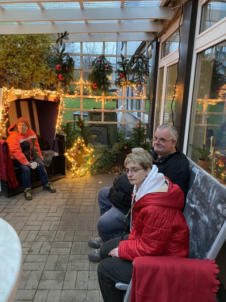 Dieser Bereich kann von allen Gruppen genutzt werden und soll in den Pausenzeiten und auch für verschiedene Angebote eine Anlaufstelle sein. Mit Punch, Keksen und in einer tollen Atmosphäre kommt man hier in Weihnachtsstimmung und trifft unter freiem Himmel auf nette Kollegen…